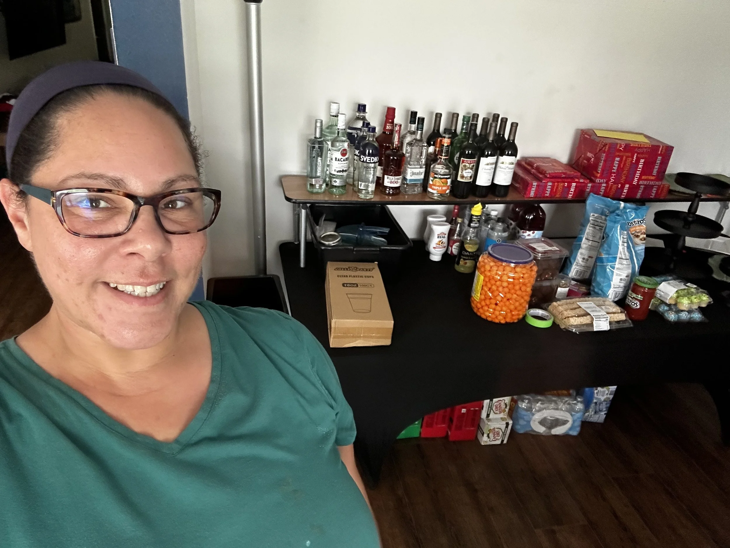 We hosted a full bar (Simple with basic mixers, liquors, beer, and wine-one red, one white), juice boxes, sodas, and water bottles were kept in coolers.